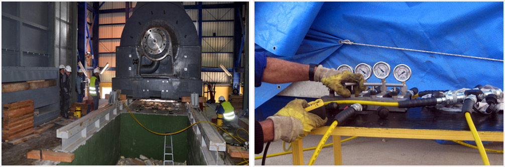 - Mise en loge et le délogement à l’aide de centrales à vérins des colis exceptionnels (Transformateurs, générateurs, turbines, etc ...).