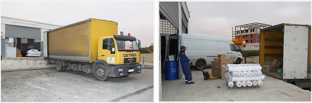 Nos parcs d'Alger et de Hassi Messaoud ont des zones sèches de stockage, camionnettes et camions pour grouper et livrer localement