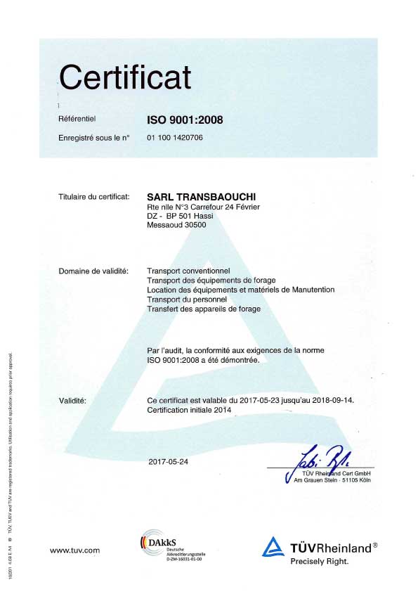 Aussi, je m´engage à me conformer à la norme ISO 9001v 2015 et à améliorer continuellement l´efficacité de notre système.